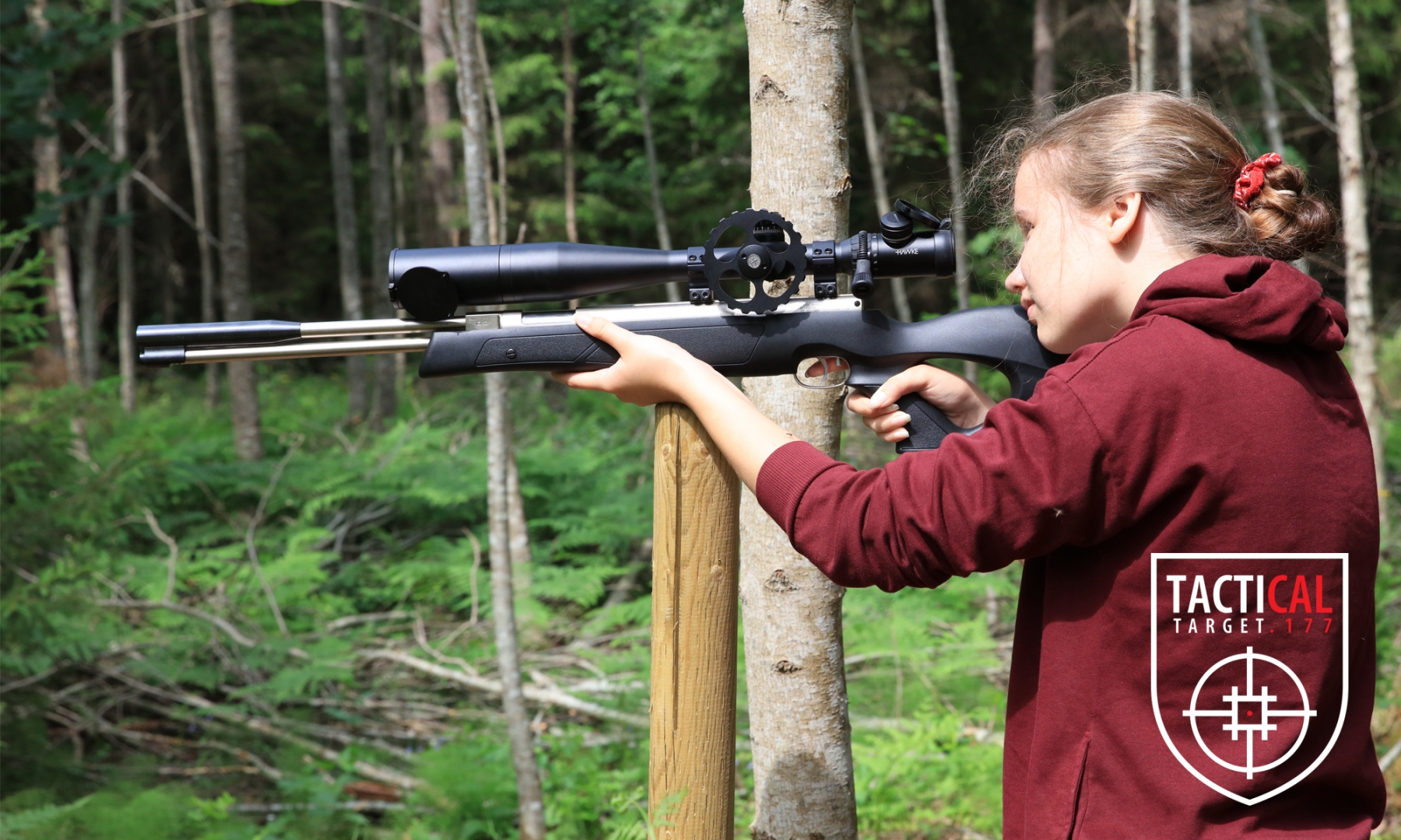 Tactical Targeti laskmiseks sobib igasugune õhkrelv. Ka kõige tavalisema murtava ja rauast sihikutega õhupüssiga saab eelnevalt harjutades lähemal asuvatele märkidele pihta. Süües kasvab isu ja nii selgubki rajal, et tabamaks väiksemaid ja kaugemal asetsevaid märke, on vaja relvale optlist sihikut 🙂